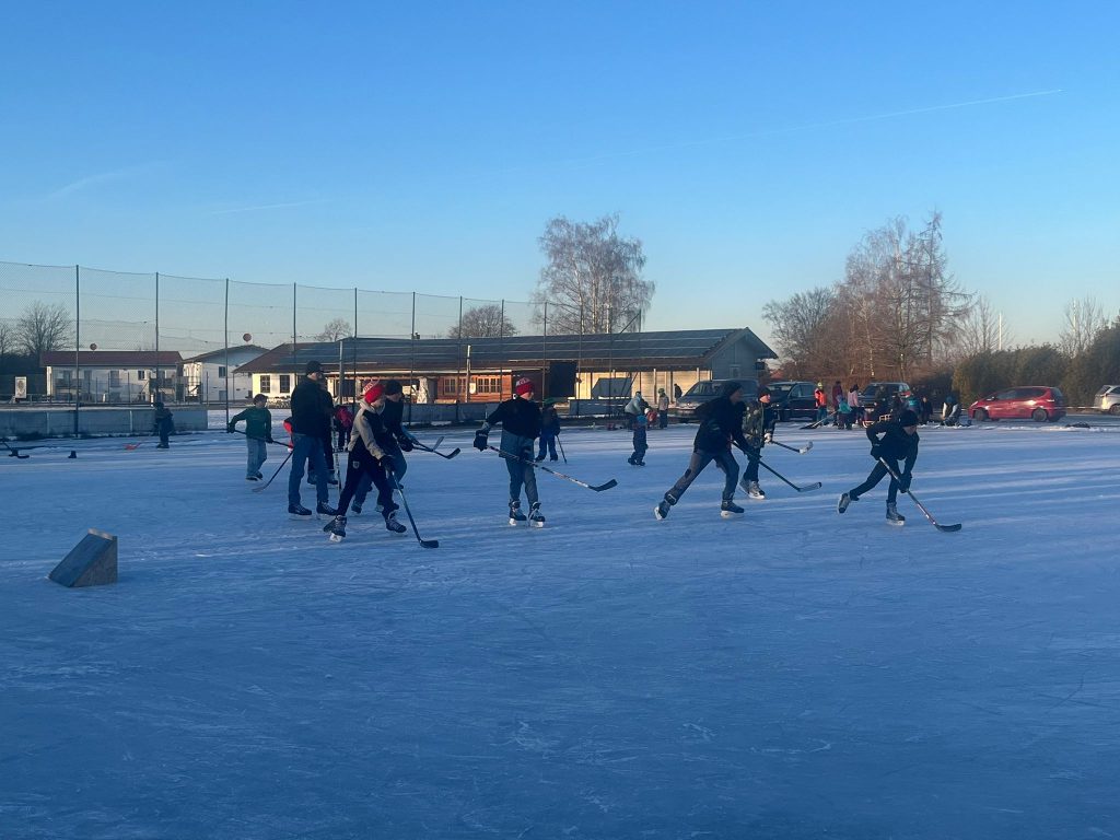In diesem Winter gab es dank der passenden Wetterlage und einem motivierten Team von Eismachern wieder eine Eisfläche am Sportgelände der DJK Darching e.V. Hier treffen sich die jungen & junggebliebenen Sportler zum Eishockey spielen, Schlittschuh laufen, Stockschießen, oder einfach nur auf einen „Ratsch“. So funktioniert ein gelungenes Dorfleben; danke an alle Eismach-Helfer, u.a. an die FFW Valley-Unterdarching-Laindern, unserm Schneepflug-Fahrer und der Fa. Lechner, sowie dem Getränkemarkt Schima und der Gemeinde Valley. Wir sind der Meinung: das war „Spitze“!
